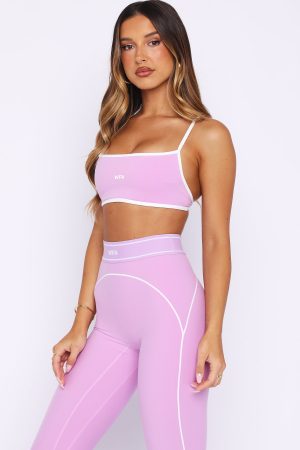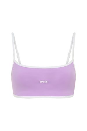 In my zone. The Elite Sports Bra in Orchid/White features thin adjustable contrast straps. a sleek square neckline. and a supportive elastic under-bust seam with a bold printed WFA initial at center front. Backless with removable bust padding and a lined. semi-stretch fabric. it’s comfortable. Pair it with the matching Precision Leggings. sneakers. and sunnies for a complete active look.