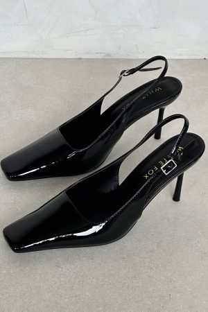 The Ella Heels in Black Patent are the definition of refined elegance. Features square closed toe. open heel and sling back strap for additional support and comfort. These heels pair nicely with denim jeans and a simplistic but striking top.