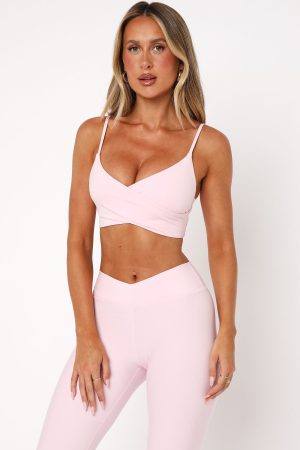 New year. better you. The Energy Surge Sports Bra Ballet Pink features thin. adjustable shoulder straps. front cross over detailing. no padding. elasticated hem and logo detailing centre back. Team with the matching Intensity Scrunch Leggings Ballet Pink. or any of our Ballet Pink activewear!