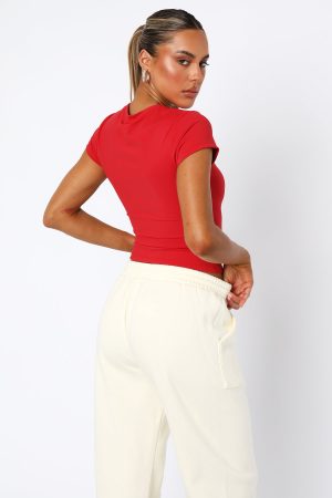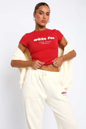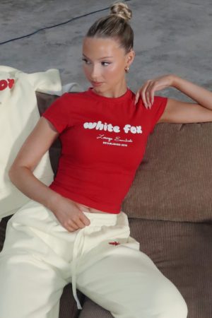 Our current in: cute and comfortable. The Era 8 Baby Tee Salsa is fitted with short sleeves. puff print logo centre front and soft stretch fabric. Complete the set with one of our matching Era 8 Bike Shorts. Era 8 Lounge Shorts or the Era 8 Sweatpants!