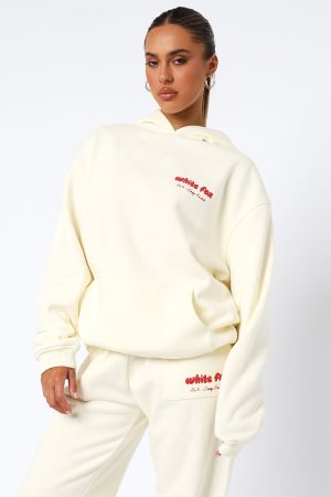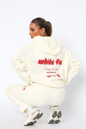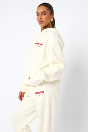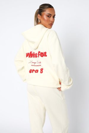 Spoil yourself with comfort. The Era 8 Oversized Hoodie Cherry Cream is an oversized fit and features elasticated ribbed cuffs & hem. hood. soft fleeced fabric for extra comfort and a puff print logo front side and centre back. Bundle up and complete the set with one of our Era 8 bottoms for a look worthy of your night in.