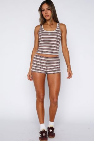 The Escape Mode Booty Shorts in Maple Bloom Stripe is a must for your new season look. These mini-length shorts feature a stretchy. ribbed fabric and an elastic waistband for an effortlessly comfortable fit that slips on with ease. Pair them with the coordinating Escape Mode Tank Top in Maple Bloom Stripe for a chic. put‑together look.