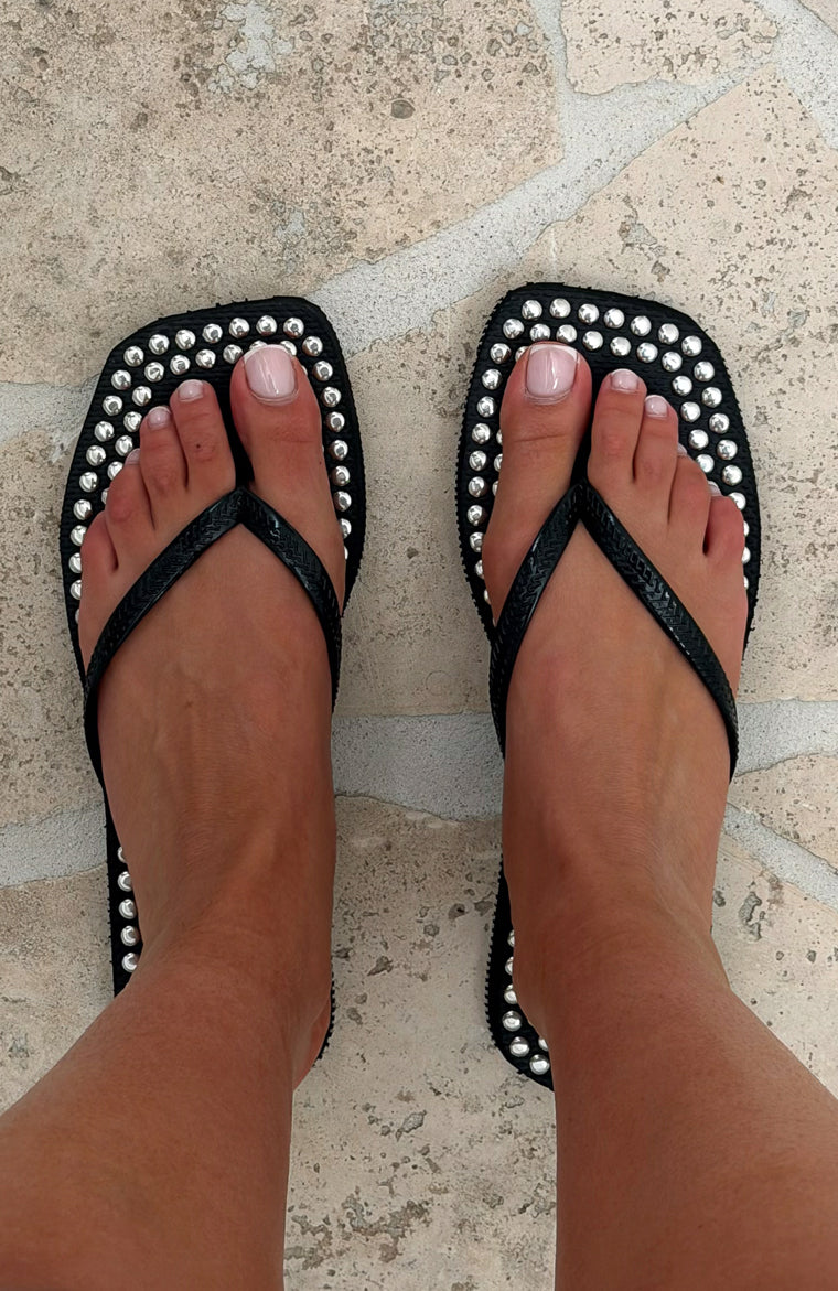 Eyre Studded Thong Sandals Black
