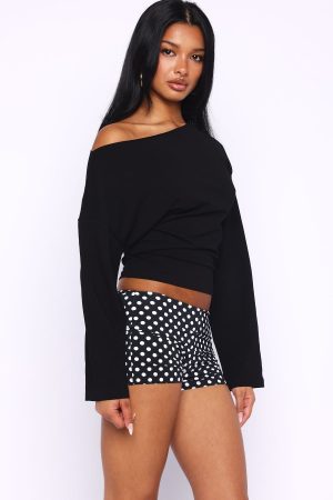 Elevate your capsule wardrobe with the Falling For Him Off Shoulder Long Sleeve Top in Black! The raw‑cut jewel neckline and wide. relaxed long sleeves give it laid‑back cool. while the stretchy fabric and relaxed silhouette keep it comfy. Style with your favourite pair of denim jeans for a classic look!