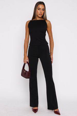 Add the Fearless Pants in Black to your new season wardrobe. These trousers have a high waist with belt loops. invisible zipper centre back. flare leg and thick fabric. Complete the matching set with our In Charge Crop for a killer look.