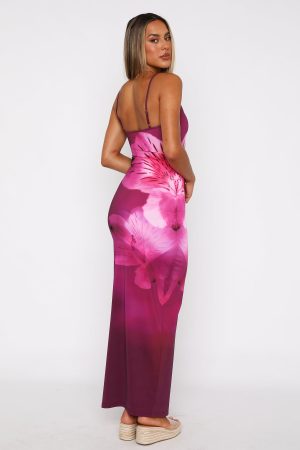 Your summer holiday wardrobe is calling out for The Feeling The Heat Maxi Dress Berry Lush. Features thin straps. low neckline and stretch fabric for an easy pull over design. Style with platform slides and your favourite gold accessories for a look we are loving!