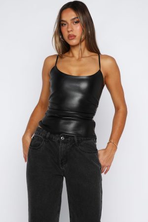 Unleash your baddie girl energy! Our Femme Fatale PU Top in Black is crafted from PU is designed for a second skin fit with it’s thin adjustable straps. scoop neckline. and fully lined. Finished with ruched side detailing. while the invisible zipper ensures seamless slip‑on. slip‑off ease. Pair with denim jeans. kitten heels and layered gold jewellery.