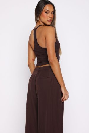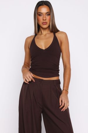 The Figuring Out Feelings Tank in Chocolate offers a beautifully feminine silhouette for your everyday rotation. Designed with thin shoulder straps. a racer-back deisgn. a subtle V-neckline. and a fitted shape. it’s fully lined in a high-stretch fabric for comfort and ease. Pair it with the matching Figuring Out Feelings Pants in Chocolate. slide into sandals and sunnies. and you’re set for a laid-back look we truly love.