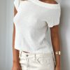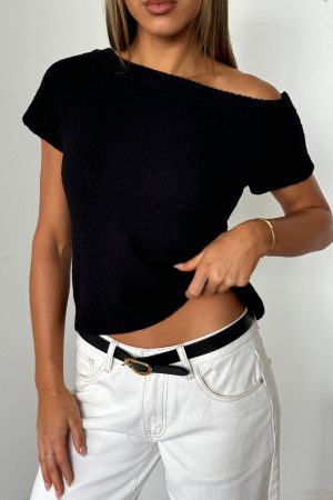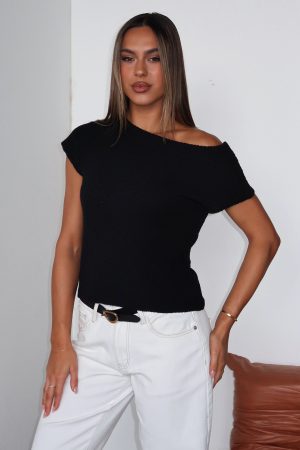 Elevate your look in the Finding Time Off Shoulder Knit Top White. Designed with a one-shoulder neckline. short sleeves and unlined for breathability. Crafted from high stretch knitted fabric. perfect for your seasonal wardrobe. Pair with your favourite denim jeans for a look that’s perfect for a seasonal wardrobe!