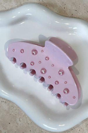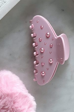 Make your OOTD shine with some extra sparkle! The Fiona Hair Clip Baby Pink features an inner claw to hold hair firmly. gem detailing. unique design and easy spring closure.