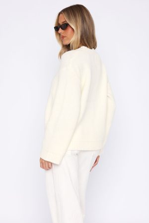 Cool girl autumn is here. and you’re invited! The Flashback Knit Cardigan in Off White features a low plunge V neckline. front tie-up detailing. long sleeves. unlined. oversized fit and cozy. knitted fabric. Style with jeans and a shoulder bag for a look we love!