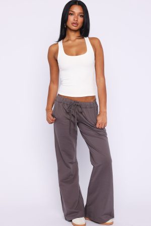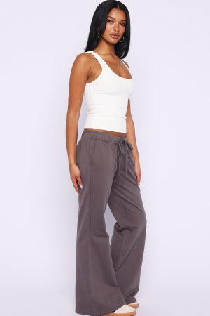 A not so basic. basic. The Flicker Of Hope Pants Charcoal features a thick elastic waistband with drawstring tie for an adjustable fit and roomy side pockets add everyday practicality. Unlined and relaxed. these pants are perfect for lounging. Style with a simple but elevated tank. sandals and sunnies to stroll the Sunday markets in.