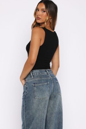 Turn heads in our newest tank that’s ready for anything…! The Be The One Rib Tank Black features thick shoulder straps. a scooped neckline. cropped length. ribbed. stretch material for an easy slip on design and front WF embellishment.
