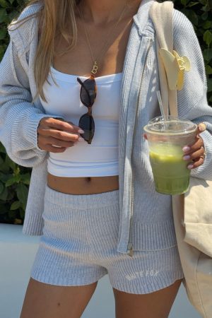 Love comfort without compromising on style? The Floating By Knit Shorts in Grey Marle are your newest fav shorts! Features thick elasticated waistband. stitched White Fox text side front and ribbed knit fabric for the coziest feel. Comfort never looked so cute paired with the matching Floating By Knit Zip Front Hoodie.