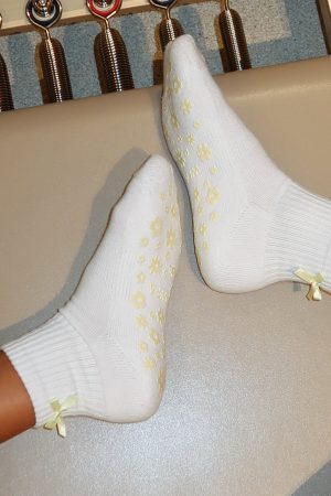 Step into sporty-meets-sweet with the the Flower Power Grip Socks Honey. These cushioned crew socks feature flower-print and WFA initials grip detailing under the foot. a ribbed ankle cuff with an attached bow at the back. and built-in arch support. Pair them with your favourite active set for a look that’s as cute as it is performance-ready.