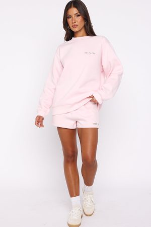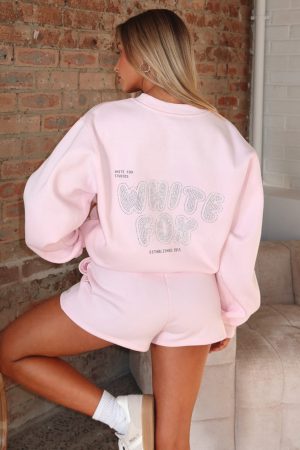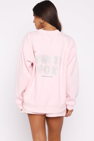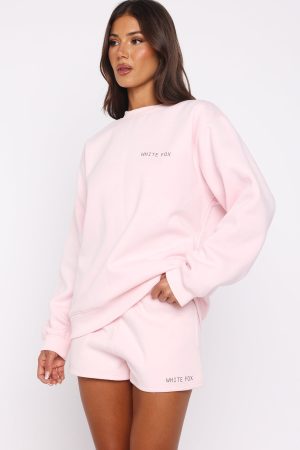 Sprinkle a little sparkle into your day with the Forever Is Ours Oversized Sweater in Cupcake. Designed with slouched shoulders and ribbed hems which round out an oversized silhouette. Featuring long sleeves. and an unlined fleece interior. this hoodie delivers a cozy feel. White Fox printed text embellishes the centre front. paired with a oversized sequin White Fox text centre back. Style with the matching Forever Is Ours Lounge Shorts Cupcake.