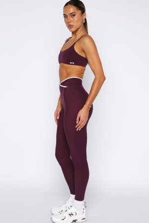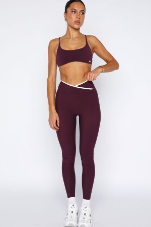 Perfecting your form has never looked better in the Form Leggings in Plum/Cream! Features a thick cross over waistband with cream trim detailing and signature WFA initial centre back. No matter your chosen activity these leggings paired with the Motivate You Sports Bra will move with you!
