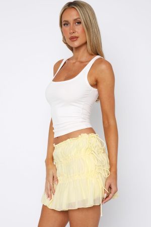 The Free Falling Tiered Mini Skirt Lemon is the perfect blend of feminine and flirty! Features an elasticated waistband with adjustable drawstring ties closing on side. tiered design with ruffle detailing and lined. Pair with a basic top and sandals for the sweetest fit!