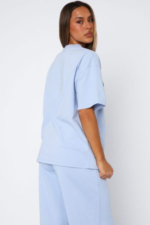 The From The Archives Allora Oversized Tee in Blue is perfect for all your laid-back looks. Features an oversized fit. slouch shoulders. high scooped. ribbed neckline. and centre front puff print logo design. Team with the matching From The Archives Allora Wide Leg Sweatpants Blue and your favourite sneakers!