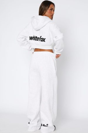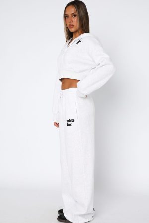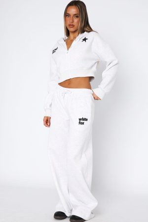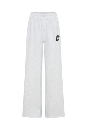 Cozy girl attire! The From The Archives Charli Wide Leg Sweatpants Grey Marle feature a thick. elasticated waistband with drawstring closure. soft fleece fabric for extra comfort . wide leg design. and puff print logo detailing. Complete the look with the matching From The Archives Charli Cropped Zip Front Hoodie Grey Marle!