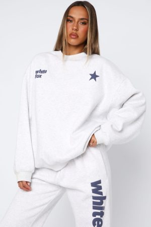 What more could you want from a lounge ensemble? From The Archives Freya Oversized Sweater in Grey Marle is tailored just for you. Featuring a high scooped neckline. ribbed cuffs and hem. over-sized fit. slouch shoulders. soft fleece lining for extra comfort. and puff print logo detailing side fronts and centre back. complete the look with the matching From The Archives Freya Sweatpants Grey Marle.