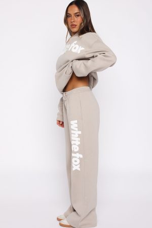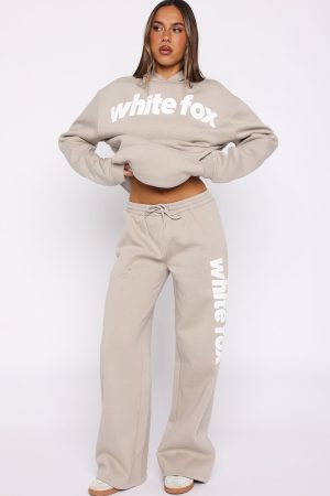Sundays just got a whole lot cooler and cosier! The From The Archives Kenzie Wide Leg Sweatpants in Moon is designed with a thick elasticated waistband featuring an external drawstring tie. side pockets. and a wide-leg silhouette. The White Fox distressed text down the side adds a signature touch. while the unlined fleece interior ensures a cozy feel. Style with the matching From The Archives Kenzie Oversized Hoodie Moon or From The Archives Kenzie Boxy Zip Front Hoodie Moon.