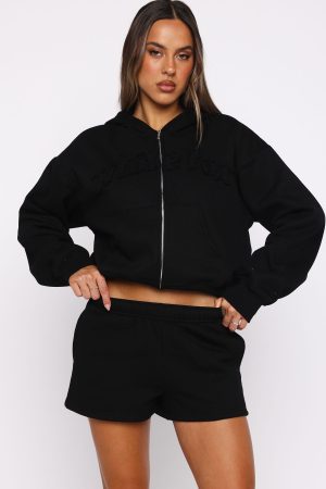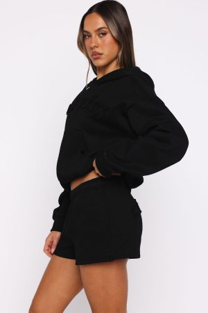 Transitional loungewear is a must-have. and the From The Archives Lexi Lounge Shorts in Black meet the brief! Features thick elasticated waistband with internal drawstring. distressed fabrication White Fox text centre back. functional side pockets and relaxed silhouette. Complete the look with the matching From The Archives Lexi Oversized Hoodie in Black.