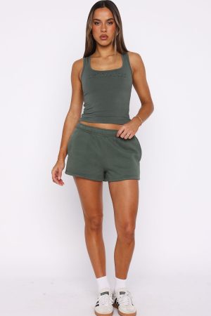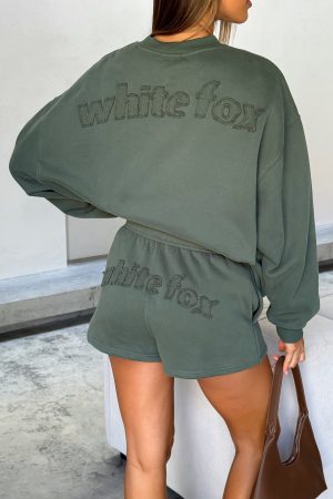 Transitional loungewear is a must-have. and the From The Archives Lexi Lounge Shorts in Khaki meet the brief! Features thick elasticated waistband with internal drawstring. distressed fabrication White Fox text centre back. functional side pockets and relaxed silhouette. Complete the look with the matching From The Archives Lexi Oversized Hoodie in Khaki.