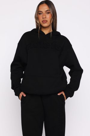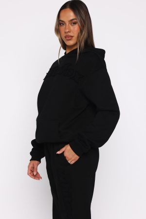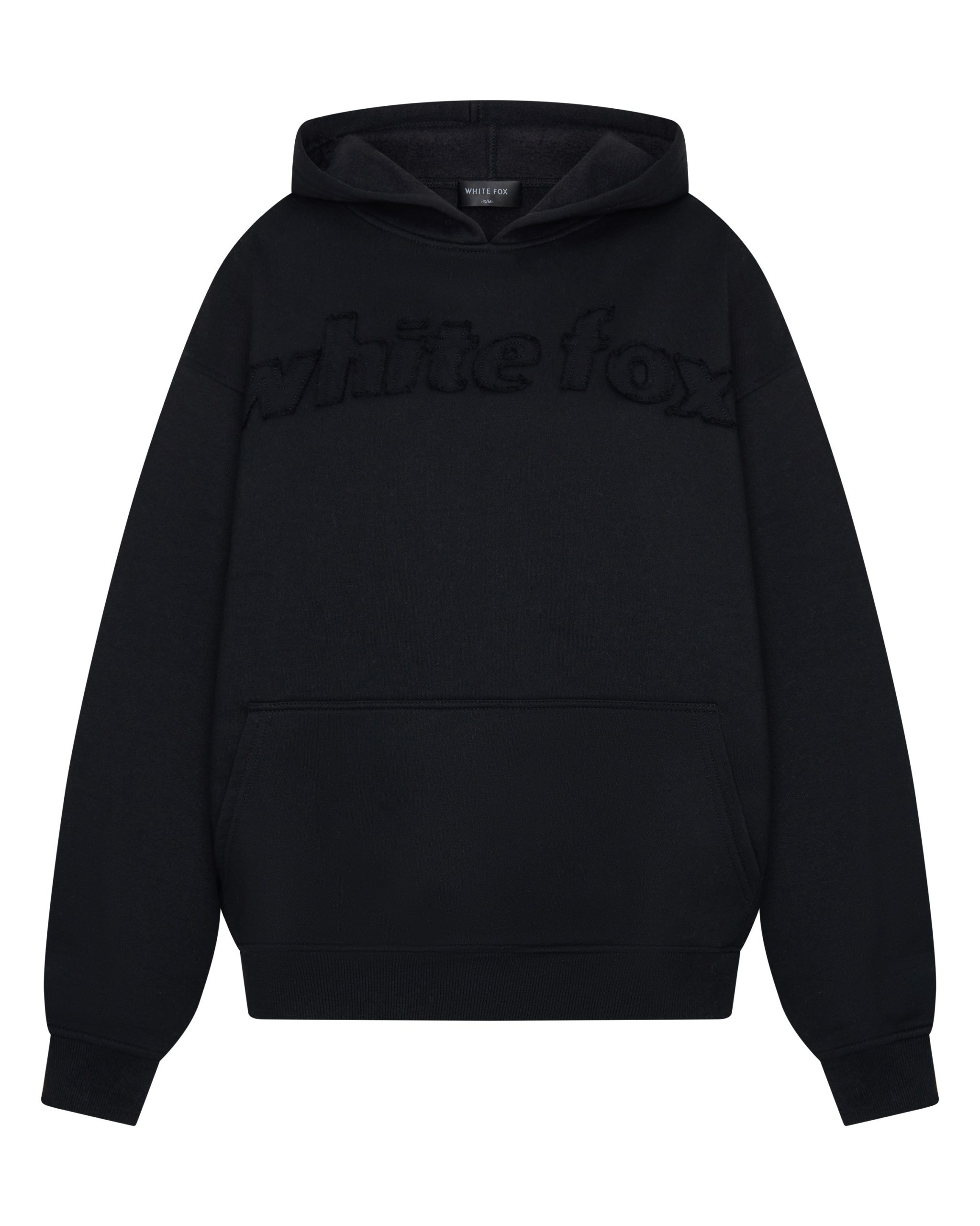 Revamp your loungewear game with the From The Archives Lexi Oversized Hoodie in Black. With its drop shoulder design. ribbed cuffs. and distressed White Fox text centre front. it’s chic and effortless. A cozy fleece interior. roomy front pocket. and ribbed waistband elevate the oversized silhouette. Pair it with the matching Lexi Sweatpants or Lexi Lounge Shorts for a coordinated. laid-back set.