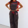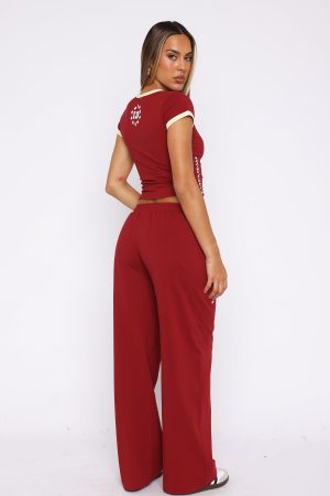 Athletic in shape. relaxed in style. The Full Schedule Track Pants Burgundy features a thick waist and drawstring. printed logo front side. high rise fit and soft. unlined fabric. Pair with the matching Full Schedule Baby Tee or Singlet for a chic and sporty look!