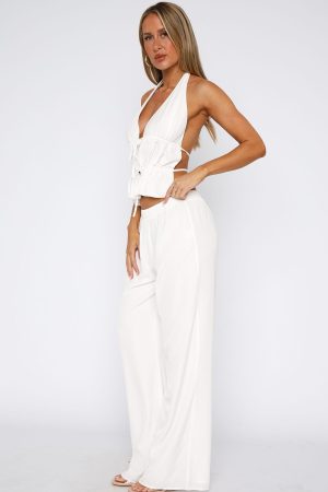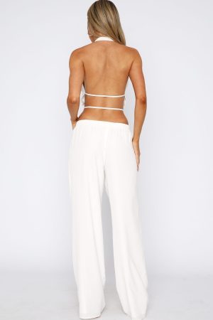 Your new partner in crime for sun filled days. The Further Away Pants White feature a thick. elasticated waistband. full length and unlined. lightweight material. Complete your OOTD with the Happier Together Top and gold accessories for a look we love!