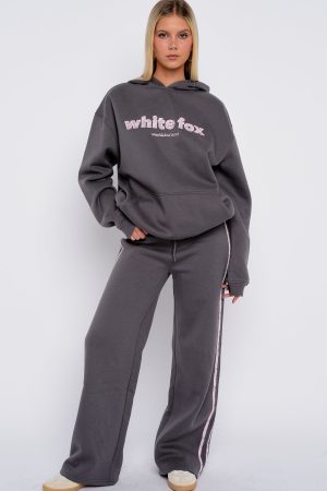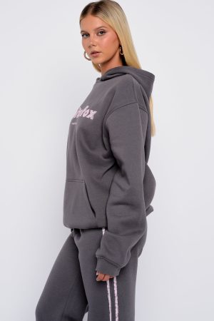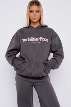 The Gave You Everything Oversized Hoodie Volcanic is your go-to for effortless comfort with a fashion-forward edge. Designed with a relaxed hood. slouched shoulders and ribbed hems which round out an oversized silhouette. Featuring long sleeves. a roomy front pocket. and an unlined fleece interior. this hoodie delivers a cozy feel. White Fox lace text embellishes the centre front. paired with a oversized lace 13 centre back. Style with the matching Gave You Everything Wide Leg Sweatpants Volcanic.