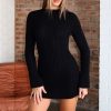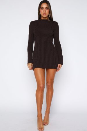In focus: chic knitwear. The Get On Down Long Sleeve Knit Mini Dress in Chocolate combines a sleek high neckline. long sleeves. and a figure-hugging mini silhouette in a comfy. stretchy knit that just slips on. Pair it with knee‑high boots and a shoulder bag for your next ‘drinks with the girls’ look.