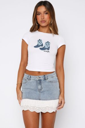 Fireworks aren’t the only thing making a statement! The Get Rowdy Baby Tee White features a high cut. ribbed neckline. shorts sleeves. cropped length. stretch material for an easy slip on design and centre front embroidered logo detailing. Complete the look with a denim mini skirt and layered gold jewellery for a look we are obsessed with!