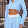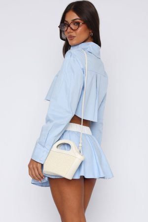 The Getting Out Of Hand Mini Skort in Blue blends structured details with a subtle feminine silhouette. Features a thick elasticated waistband. fixed self tie bow centre front. pleated design adding volume and hidden stretch fabrication shorts. Feel complete by pairing with Getting Out Of Hand Cropped Shirt in Blue for a look we are obsessed with!