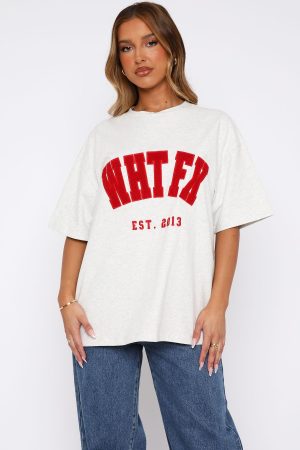 Less is more in the Give It Away Oversized Tee Grey Marle/Red. Features an oversized fit with slouch shoulders. round neckline. and WF logo centre front. Style with with your favourite pair of baggy jeans and sunglasses for an effortlessly chic look!