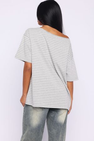 Tags: buystructure:fashion, clothing, colour:grey, discountable, discountable_uk, discountable_us, Division:Lounge, end-use:day, fabric-type:100-cotton, feed-cl0-newarrivals, feed-cl2-fullpriceau, feed-cl2-fullpriceuk, feed-cl2-fullpriceus, length:short-sleeve, New Arrivals, new_arrivals_au, new_arrivals_uk, new_arrivals_us, off the shoulder, one shoulder, pattern:print, recently_added_2026-01-02, SALE40, season:transeasonal, size:l/xl, size:m/l, size:s/m, size:xs/s, sizeguide:clothes, subcat:t-shirts, t-shirts-&-tees, tees, tone:Grey/White Stripe, tops
