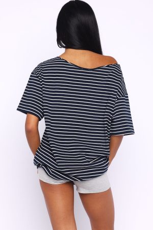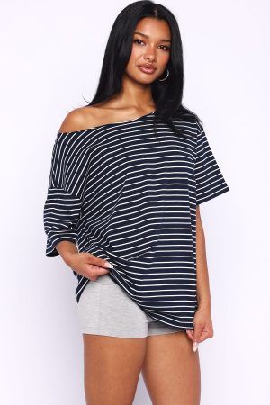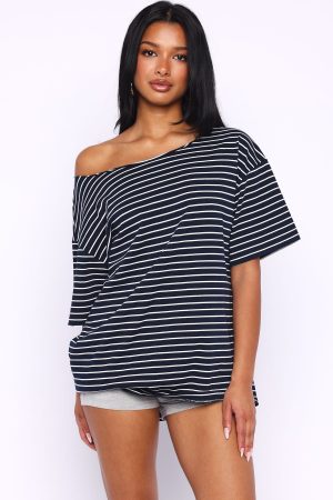 Give Me Options Off Shoulder Tee Navy/White Stripe