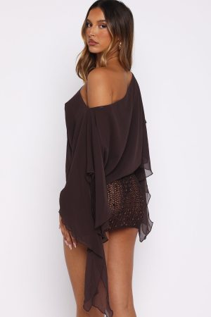 Meet Glitter Mood Sequin Crochet Mini Skirt Chocolate. the summer skirt you’ll be reaching for on repeat! Designed with a thin elasticated waistband and crafted from sheer crochet knit adorned with shimmering sequin detailing. this unlined mini skirt offers a lightweight feel. Style with a Static Heart Top. kitten heels and layered gold jewellery for all eyes on you.