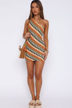 The Go Loco Mini Dress in Tropics is made for sun-kissed days into the rhythm of the ocean breeze nights. Features one shoulder neckline. elasticated hemline giving you that cinched fit. lined and invisible zipper with hook and eye closure on side. Make heads turn by pairing with kitten heels and layered gold jewellery.