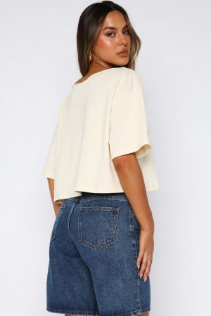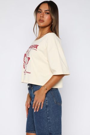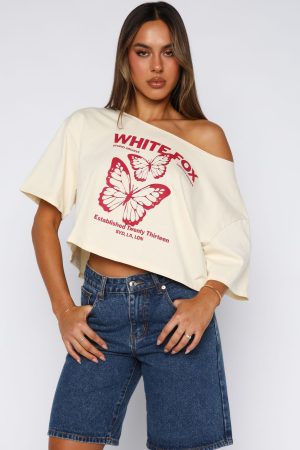 Casual days look the you in the Going Back To You Cropped Off Shoulder Tee in Off White! Features a off the shoulder neckline. short sleeve and White Fox text and graphic centre front. Pair with your fav denim shorts. sandals and sunnies for the perfect chill summers day fit!
