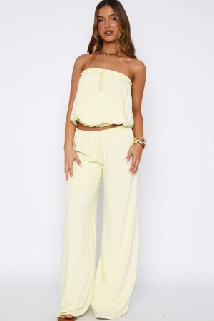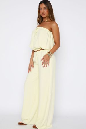 Matching sets are a must this summer! The Golden Child Pants in Lemon features a thin elasticated waistband. wide leg design and lined. Pair with the matching Golden Child Strapless Top in Lemon for an effortless but beach babe fit!