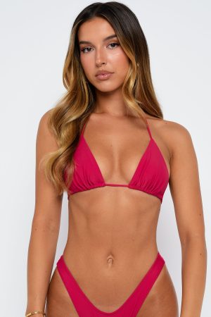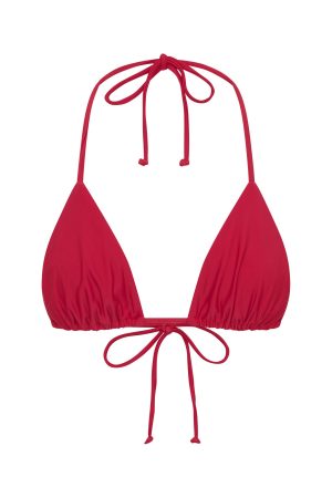 Turn up the summer heat in the Golden Hour Bikini Top in Cherry Red. This sleek triangle top features a halter-style neckline with thin elasticated straps. adjustable back strap. and removable padding for tailored comfort. Pair it effortlessly with our matching Cherry Red bottoms for a perfectly on‑trend poolside look.