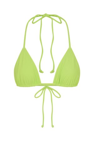 The Golden Hour Bikini Top in Lime is an essential for sun drenched days. This triangle bikini top is a halter neck style with thin elasticated straps and removable padding. To compliment the top. pair with one of our Lime Bikini Bottoms for the perfect poolside look!