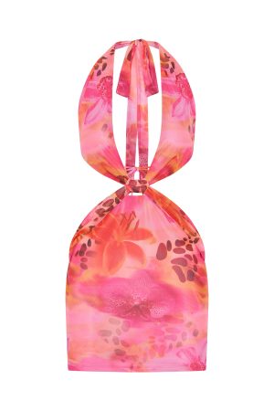 Stand out in the Good Decisions Mini Dress Paradise Dreams! Features a halter style neckline. mesh lined. slightly sheer. front cut out detailing. mini length. ultra low-cut neckline. back self tie detailing and gorgeous printed fabric. Pair with knee high boots and gold accessories!