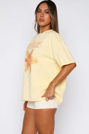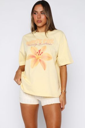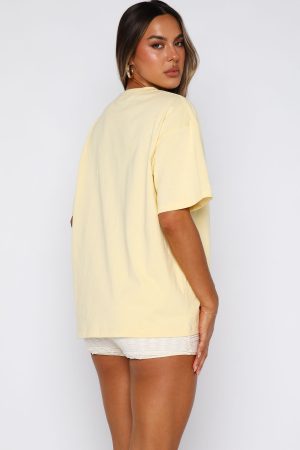 Add a pop of playful charm to your wardrobe with the Got That Glow Oversized Tee in Lemon. This tee pairs an oversized fit and slouched shoulders with a classic round neckline. while bold White Fox text and graphic front add instant personality. Effortlessly style it with shorts and your fave sneakers for a look that’s comfy. chic. and full of glow-up energy.