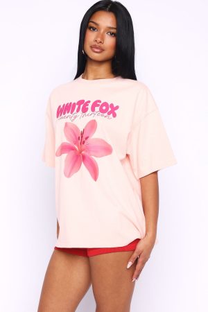 Tags: buystructure:fashion, clothing, colour:pink, description_cleaned_au, discountable, discountable_uk, discountable_us, Division:Lounge, end-use:day, fabric-type:100-cotton, feed-cl0-newarrivals, feed-cl2-fullpriceau, feed-cl2-fullpriceuk, feed-cl2-fullpriceus, feed-cl4-spring, feed-cl4-summer, flower, length:short-sleeve, New Arrivals, new_arrivals_au, new_arrivals_uk, new_arrivals_us, pattern:plain, recently_added_2026-01-02, SALE40, season:summer, size:l/xl, size:m/l, size:s/m, size:xs/s, sizeguide:clothes, subcat:t-shirts, subcategory:T Shirts, t-shirts-&-tees, tees, tone:Peach, tops