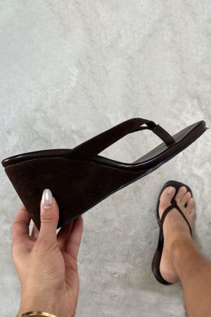 Let the Grace Wedge Chocolate Faux Suede take you from brunch to bar! Features a cushioned footbed for all-day comfort. round open toe. wedge heel. Style with any of our spring looks for a chic vibe!
