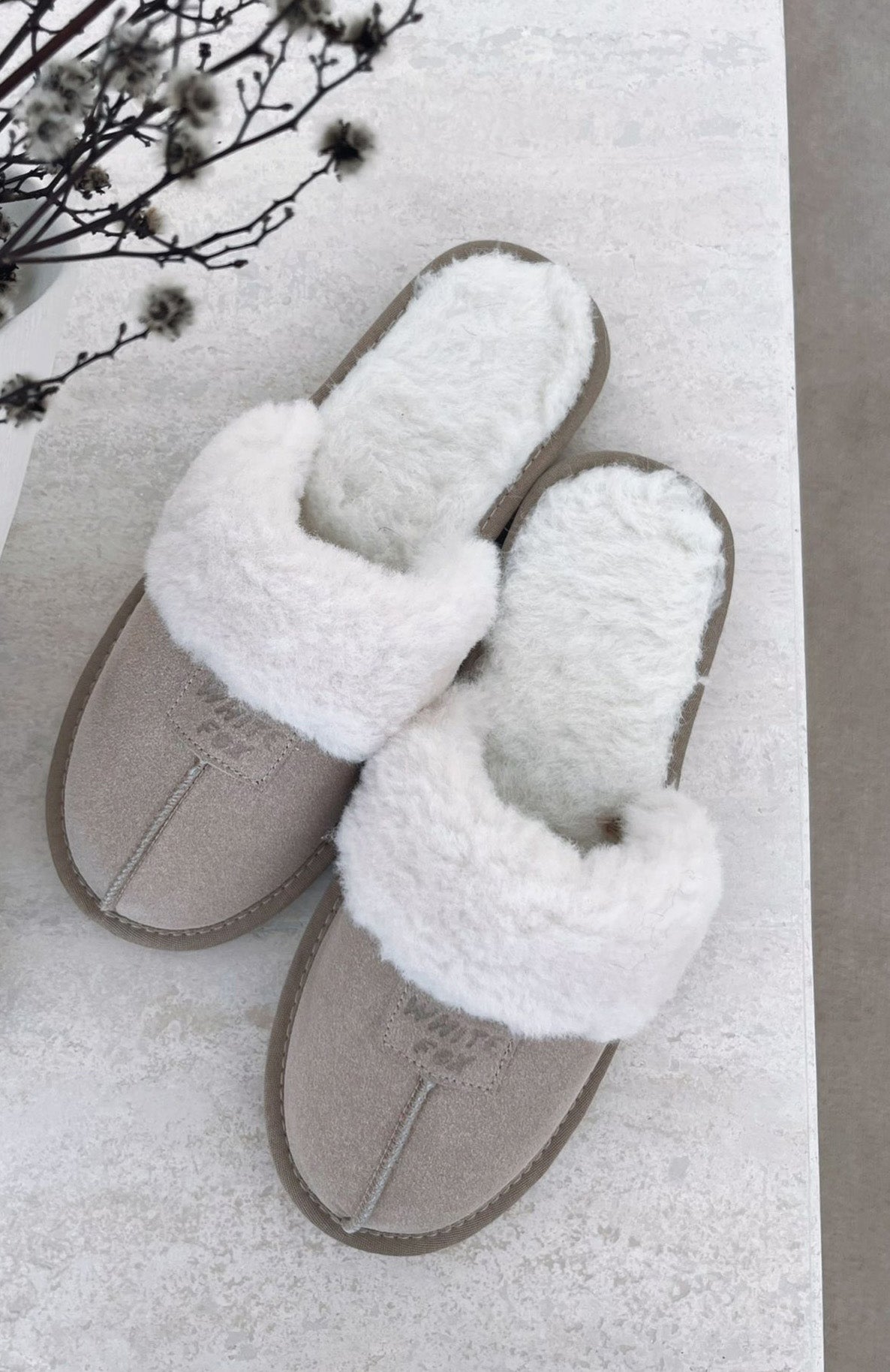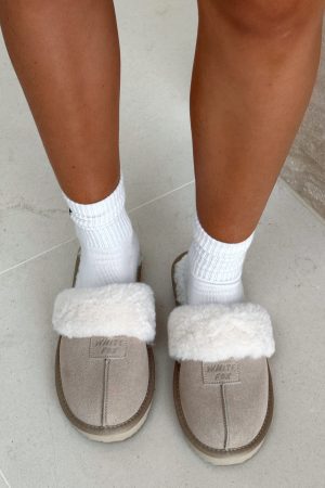 No words needed for the Grayson Slippers in Nude! These slippers feature a round. closed toe with a White Fox label at the front. a plush fur band across the top. an ultra-soft interior. a thick sole for everyday wear. and an open. round heel for comfort and ease. We loved these pair with a matching lounge set for the ultimate comfy look.