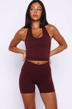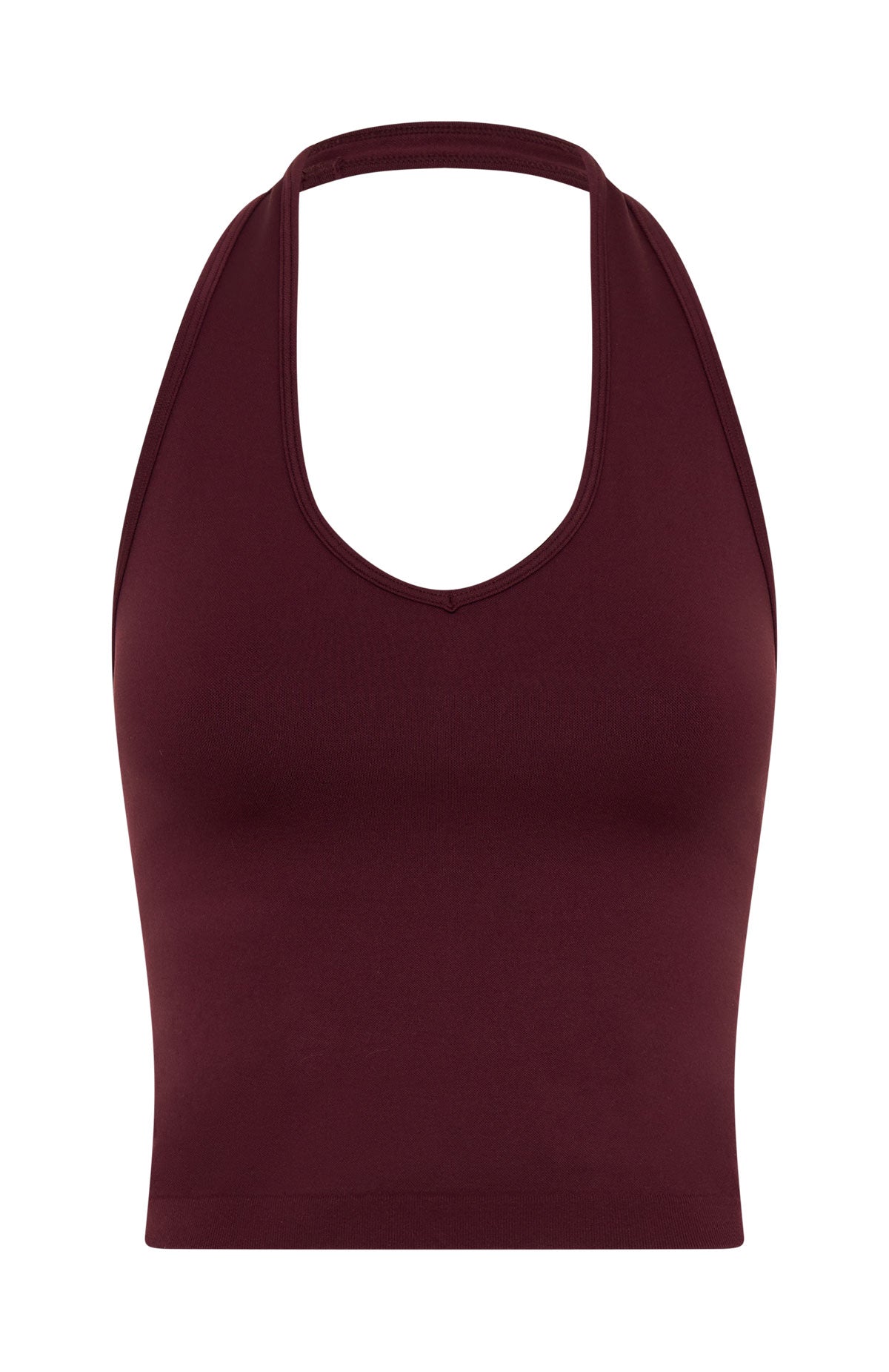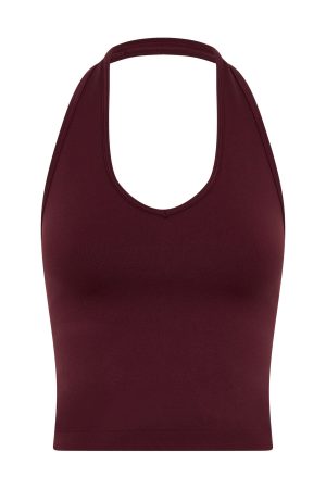 Matcha run fit! The Grit Seamless Active Tank in Merlot features halter neck design. built in bra with removable padding for a supportive fit. unlined. stretch material that moves with your body. and open back design. Pair with the matching bottoms in Merlot for your next sweat sesh look!